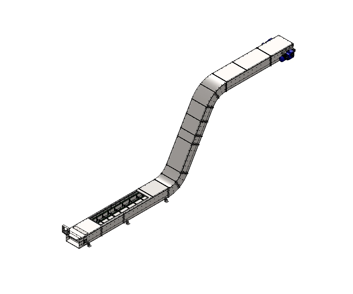 Przenośniki zgrzebłowe przeznaczone są do przemieszczania produktów takich jak materiały sypkie, mrożone owoce i warzywa, odpady po procesowe itp. W zależności od pożądanej wydajności urządzenia komora transportowa (szerokość, wysokość, prędkość transportowa) jest dostosowana do potrzeb technologicznych.